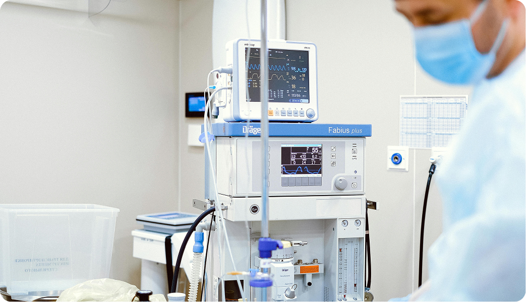 IV induction, continuous monitoring, airway control (including nasal intubation). Ideal for complex, longer, or multiple procedures in a single visit.